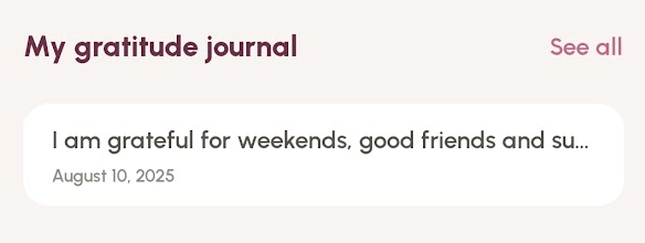 To view all of your journal entries, tap 'See all' to the right of 'My gratitude journal'.