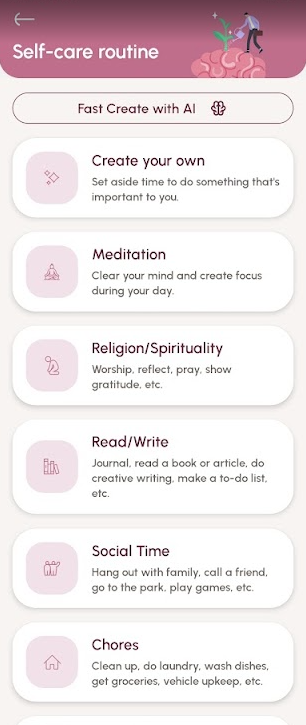 - Tap the 'Self-care routine' card.
