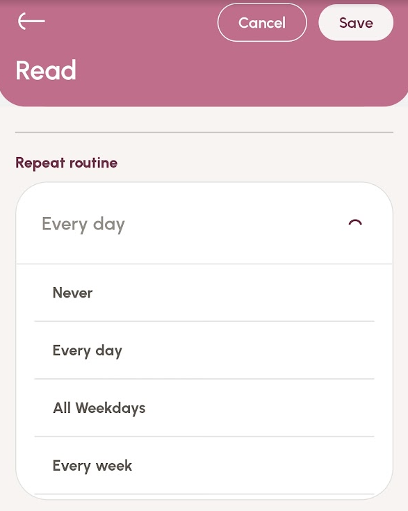 If you want the routine to occur more than once, set the frequency using the scrollable 'Repeat routine' drop down.