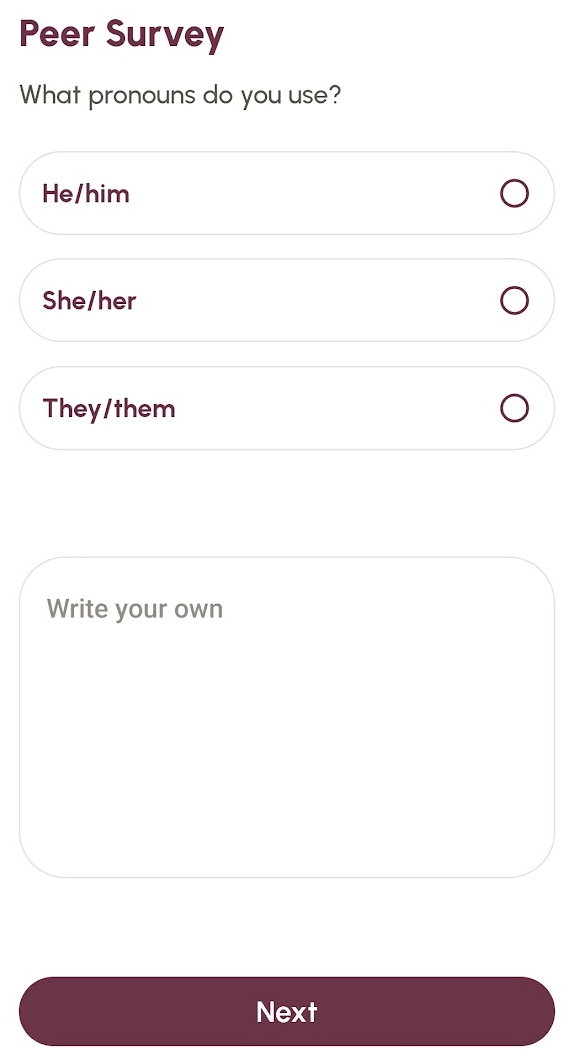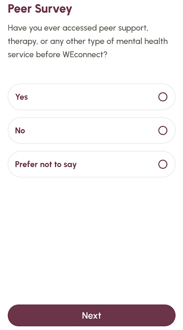 - Add any other information that you think might be helpful for us to know when selecting a peer for you, and then tap the 'Submit' button at the bottom of the page.